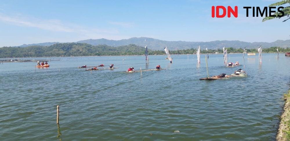 Foto-foto Rebutan Ketupat Syawalan di Waduk Rowo Jombor, Seru!