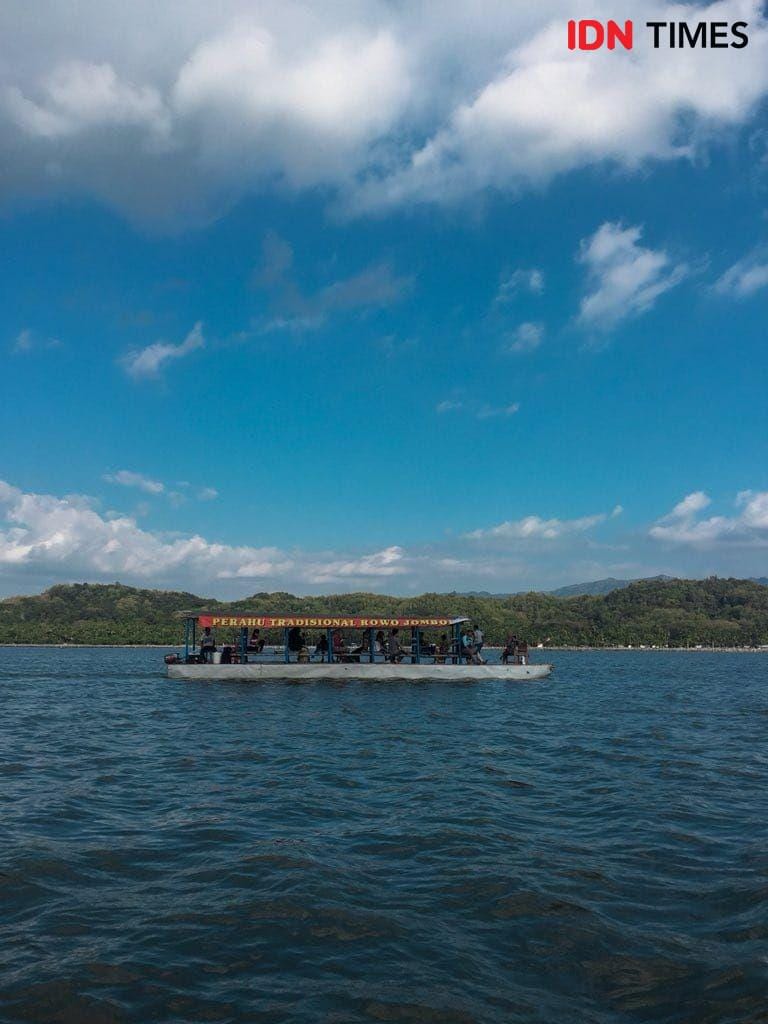5. Beberapa orang bermain getek, moda transportasi yang tetap dilestarikan di Rowo Jombor