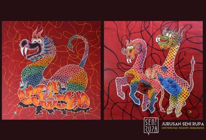 Di atas kain mori yang telah diberi pola batik motif Warak Ngendog, sejumlah warga berbondong-bondong memoleskan mata kuas dengan berbagai warna.