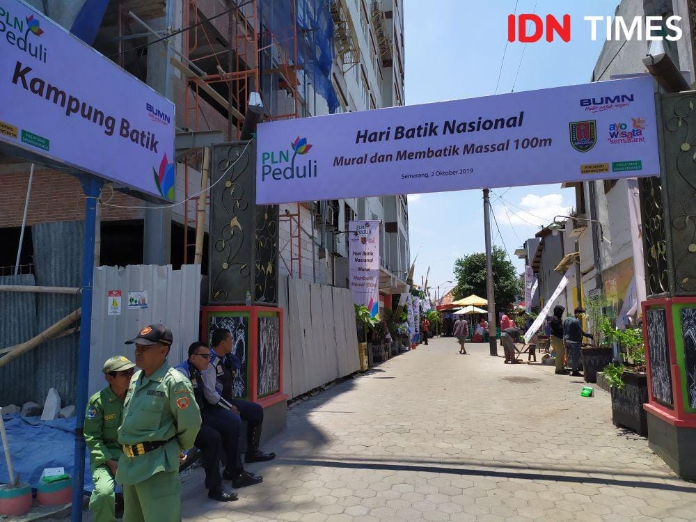 Bertempat di Kampung Batik, Bubagan, Kecamatan Semarang Timur, sejumlah warga menggelar kegiatan membatik 100 meter untuk mengenalkan keragaman karya para pembatik lokal.
